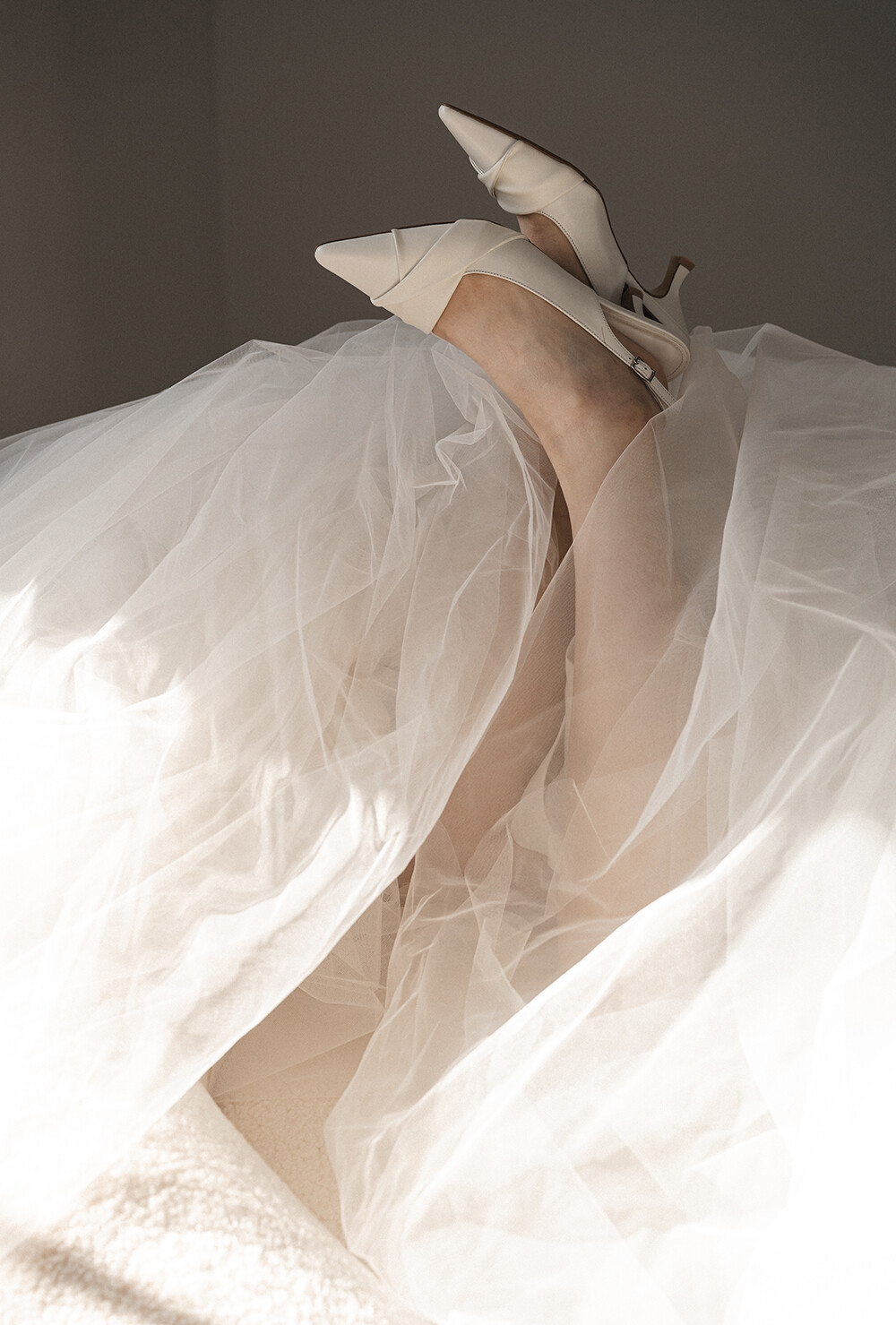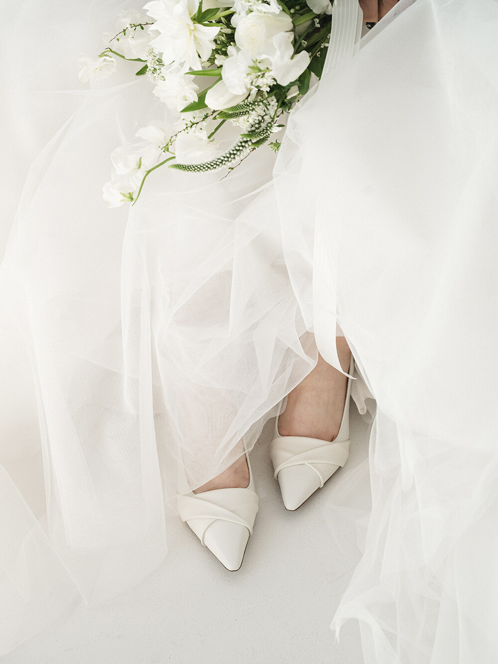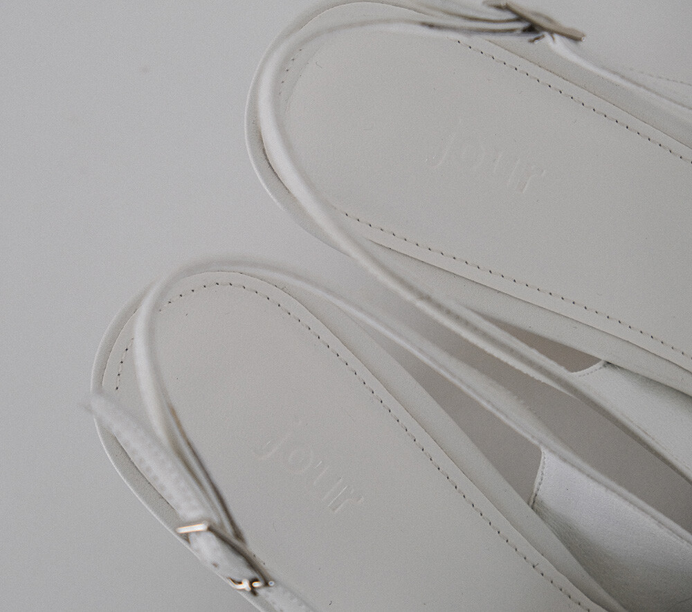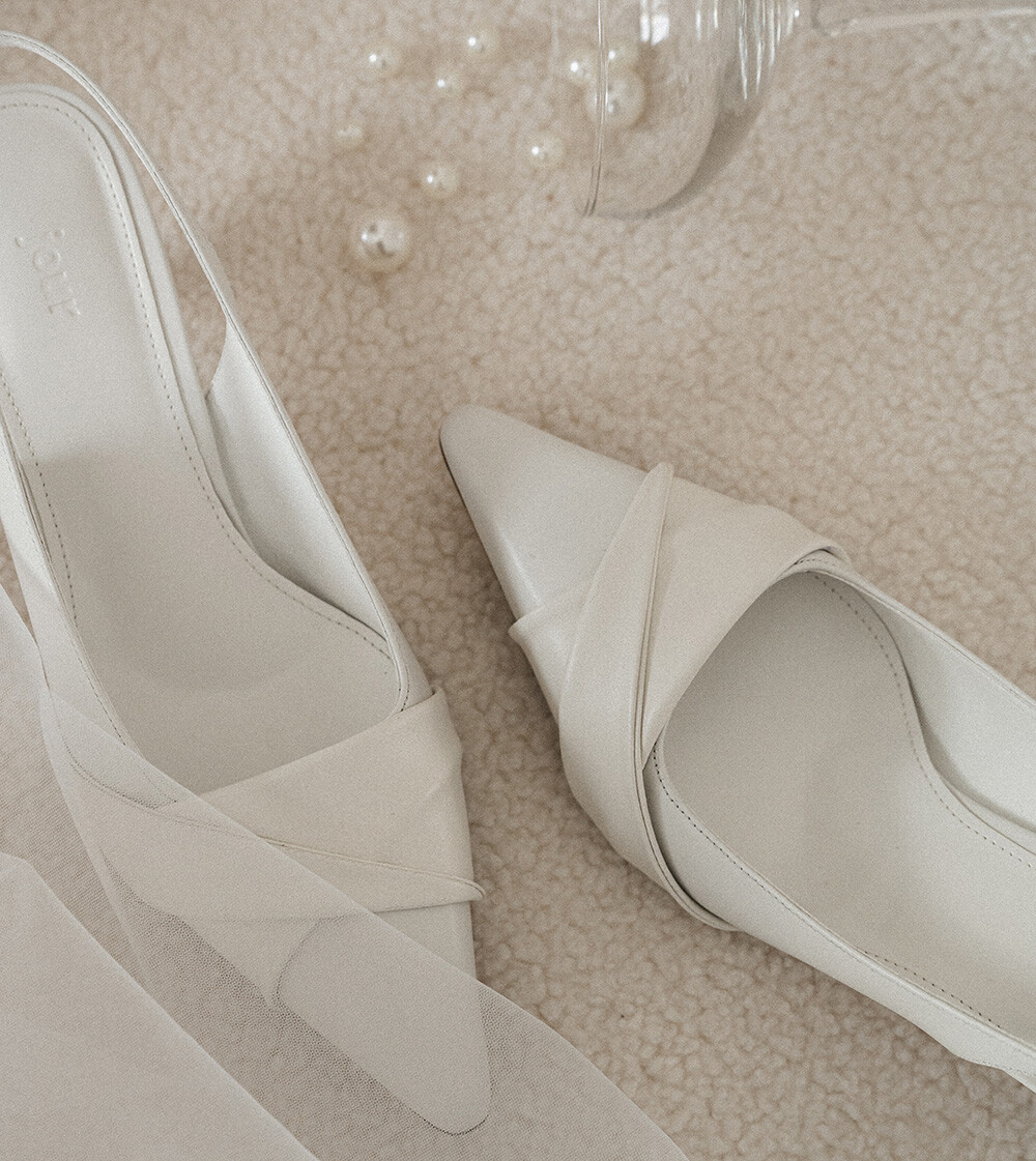11년차 경력의 웨딩플래너가 소재부터 디자인까지 거친 웨딩슈즈로 평소에 구두를 신어본 적 없는 신부님들에게도 편안한 쥬르의 첫 웨딩 슈즈 입니다. 단가를 낮추기위해서는 합성 가죽이 최고겠지만 일생에 단 한 번뿐인 웨딩 슈즈이자 몇시간 동안 신부님 발에 착 감겨야하는 중요한 품목이기에 가장 부드러운 양가죽을 사용하여 어떠한 포즈에서든 발이 편안하게 제작되었습니다.